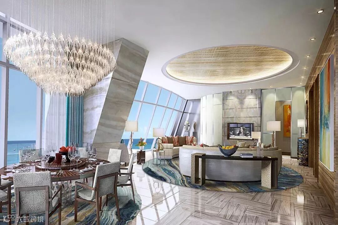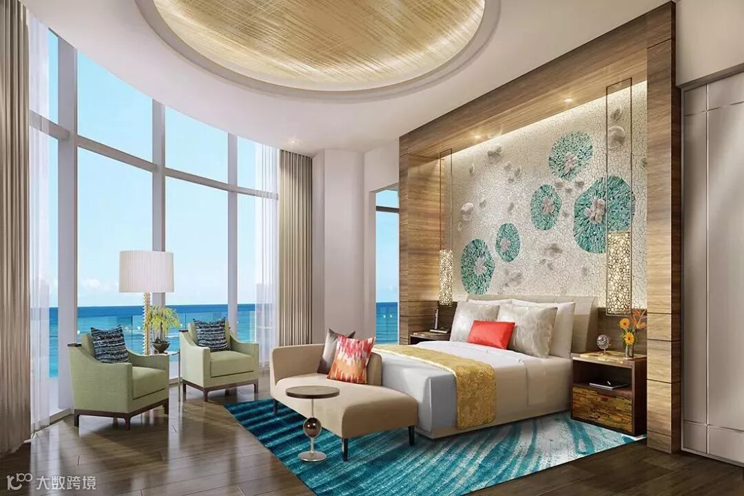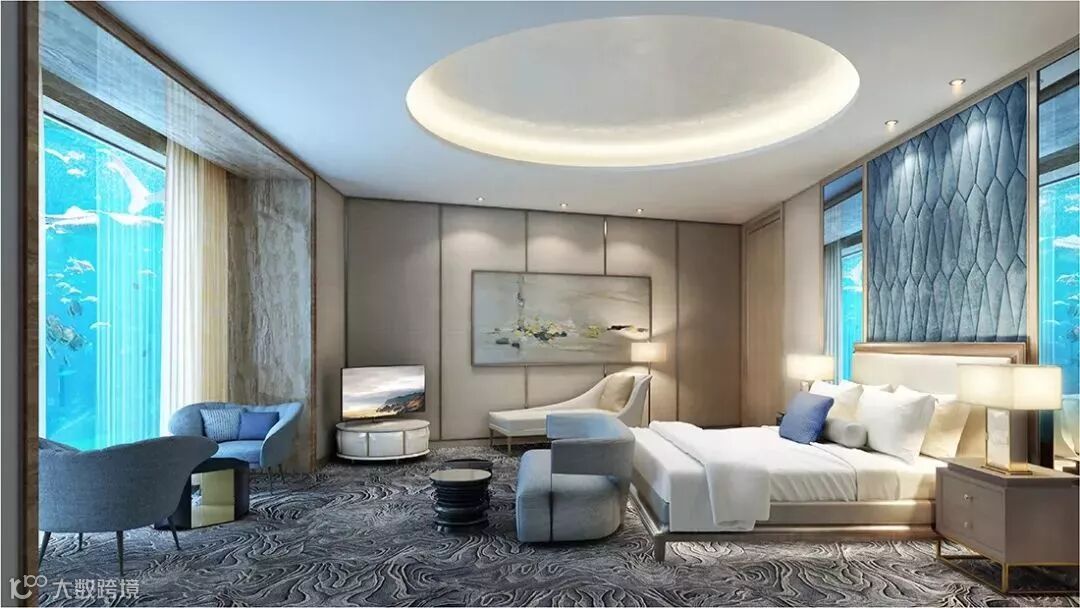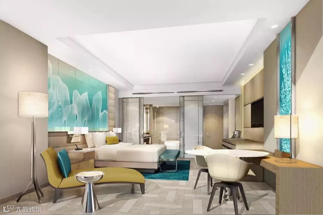 其它客房分布在6-55F,48.5㎡起跳,房间宽敞明亮,以蓝色为主色调,在家具备品上都讲究细节,可欣赏海棠湾景致或亚特兰蒂斯水世界。