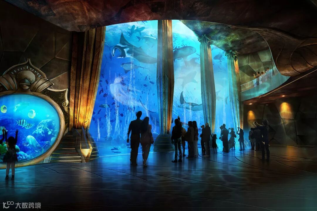 86000尾海洋生物,陪你漫步于“失落的空间”水族馆,探寻在海底隐藏了千年的亚特兰蒂斯文明,池水在灯光的映射下呈现出奇幻多变的颜色,86000尾海洋生物在这里游弋,囊括了逾270种淡水和海水动物,包括鲨鱼、鳐鱼、水虎鱼、海鳗、魅影鳐鱼、和巨骨舌鱼等。