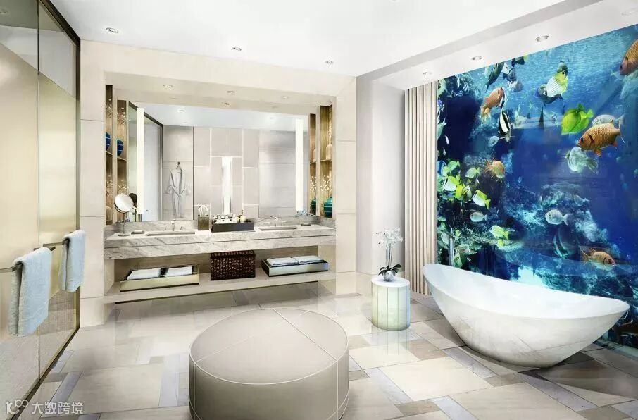 亚特兰蒂斯酒店最好最贵最个性的客房,不是位于酒店主楼顶端,也不是总统套房,当然是大中华区仅有的五间水底套房,透过卧室和浴室的落地窗欣赏水族馆大使环礁湖的壮丽景致,与奇趣曼妙的海洋生物共居,枕着海底世界悦然休憩,原本是梦中的场景就这么活生生的摆在了你的面前,这是与海最亲密的接触,它将你融入一片蔚蓝之中。