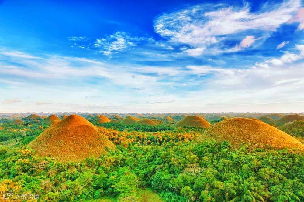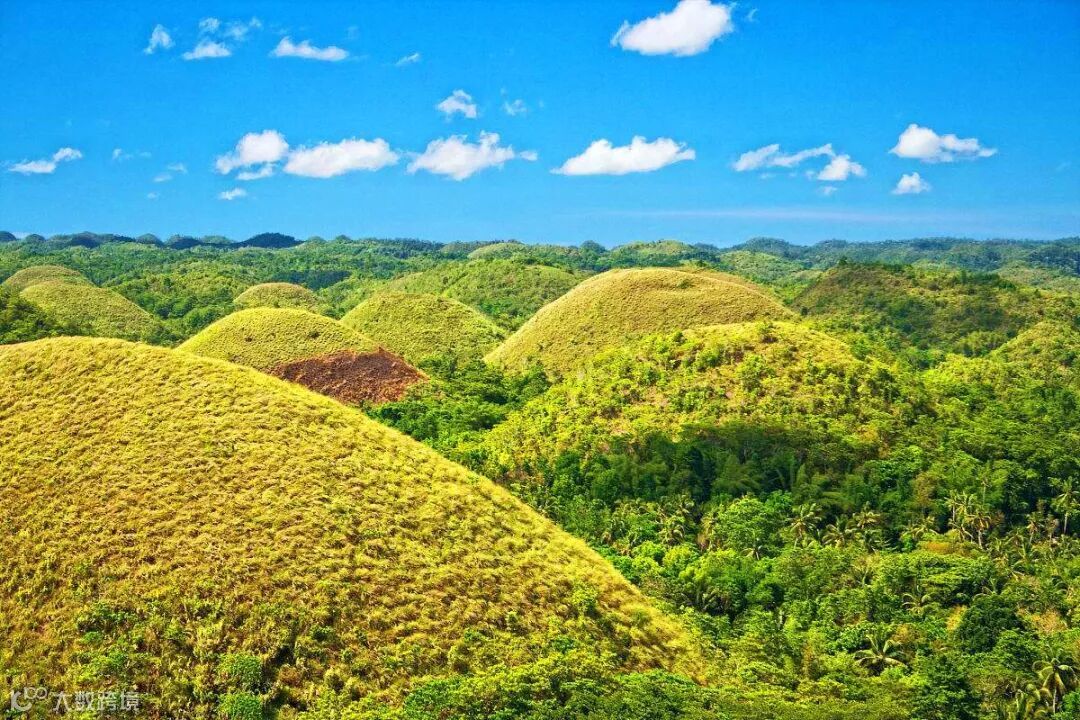 由 1268个造型优美的圆锥型山丘所组成,每一座高度为40-120公尺,属石灰岩地型,每逢旱季山上的草干枯后变为深褐色,酷似巧克力,因此而得名。