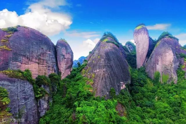 其发育丰富程度及品位世界罕见,被有关专家誉为“丹霞之魂、国家瑰宝 ”。从山底仰望八角寨,昂首挺立的山峰分八扇伸向八方,俗称八个龙头。
