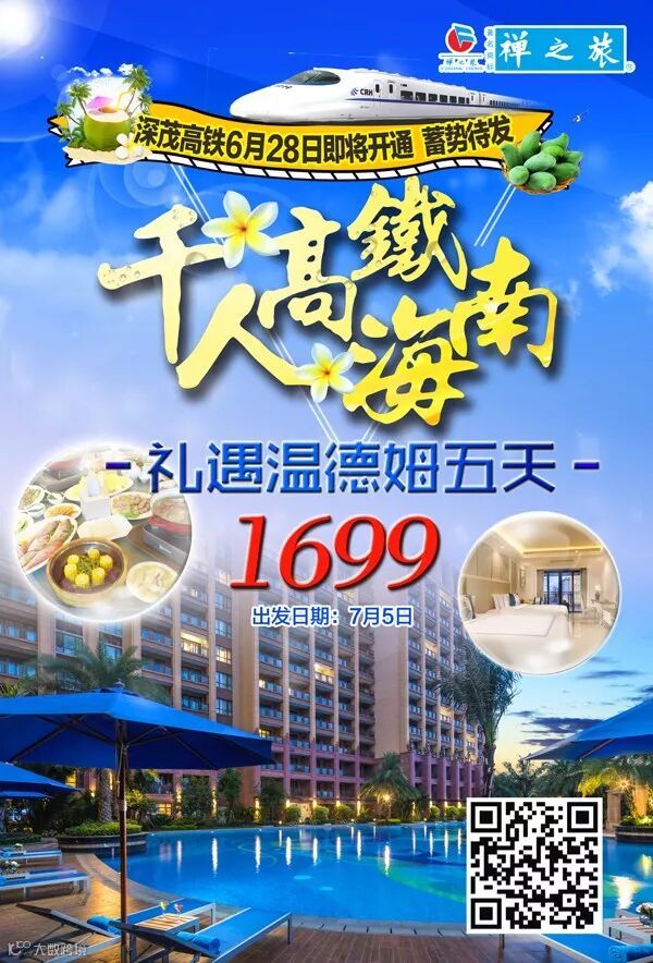 【千人高铁游海南】*礼遇温德姆酒店高铁五天*