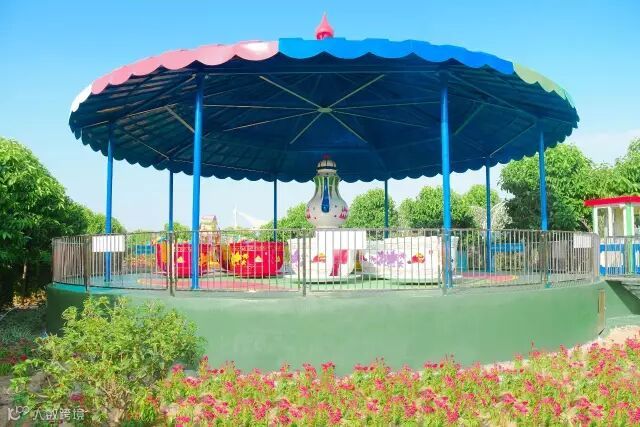 糖果乐园、咖啡杯、弹跳机,在玫瑰园旁依次排列,烈而奔放的玫瑰,预示我们会肆意、彻底释放地玩乐。