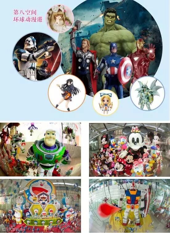 百万葵园的环球动漫港,全是世界级的珍藏版、限量版动漫,如用上万个扭蛋堆砌而成的广州“小蛮腰”,根据原型1:1打造的复仇者联盟等等。