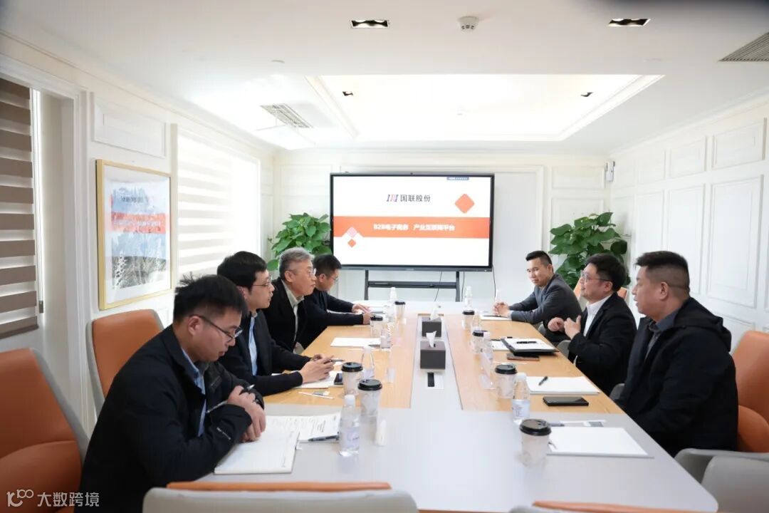 2025年10月13日,中国林产工业协会会长周鸿升、副秘书长刘栋,菏泽通盛集团党委委员、副总经理季保卫,山东通盛数据科技有限公司项目经理马运涛一行莅临国联股份数字经济总部考察交流。国联股份创始人、CEO/总裁钱晓钧,国联股份副总裁、玻多多CEO赵岩,玻多多副总裁何正礼对来访嘉宾予以热情接待,双方围绕林产工业数字化转型、供应链协同升级及产业生态构建等核心议题展开深度探讨。