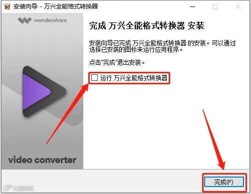 12.安装进度走完后取消勾选【运行 】,点击【完成】。