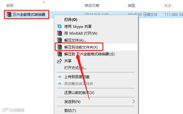1.选中软件安装包,鼠标右击压缩包选择【解压到当前文件夹】。