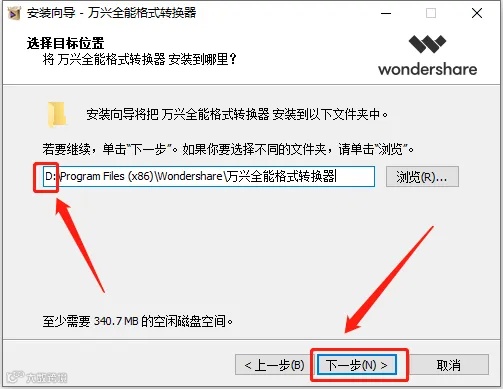 8.需要设置安装路径,将C改为D盘或者其它磁盘即可,然后点击【下一步】。