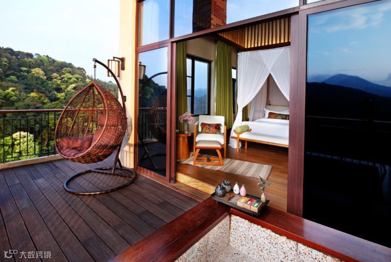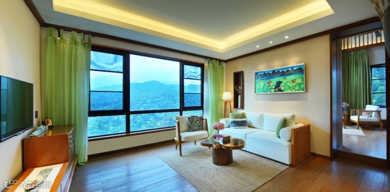 十字水二期“树梢”组团客房,越过树梢共赏群山园林景色;室内6米中空客房,加大居室的空间感,情侣度假旅游上佳选择;