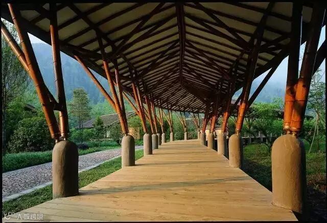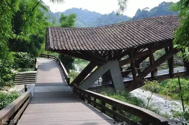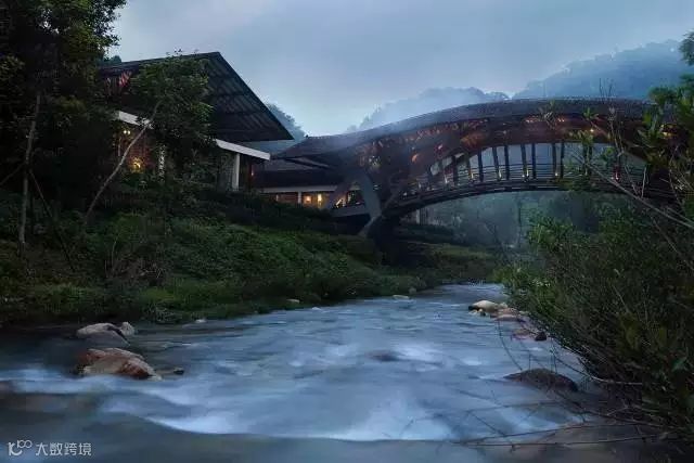 苏轼诗中曾说,“宁可食无肉,不可居无竹。”中国古代士大夫阶层对竹的偏爱亘古不变。坐拥竹海的十字水度假区,又怎能错过“竹”这一文化情怀?在一定程度上,十字水的设计,还原了古时隐居竹林的意境。不仅保留了原生态的竹林,在人为建筑的建设中,也多使用了竹材,设计元素围绕“竹”这一主题展开。最具代表性的便是度假区入口处的竹桥,由哥伦比亚竹建筑艺术家Simon Velez设计,中国只此一座由竹结构建成的桥梁。竹桥选用长度从1米到20米的南昆山原生毛竹作为材料,巨大的桥体由直径12厘米的粗竹交迭构造,却非传统中国桥梁形制,而是雄浑的伞状结构。