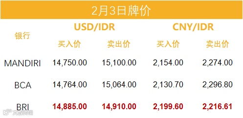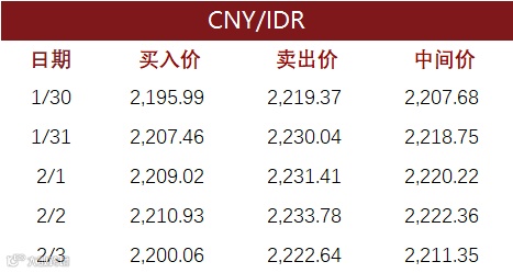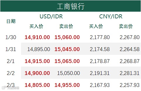 印尼央行每周牌价