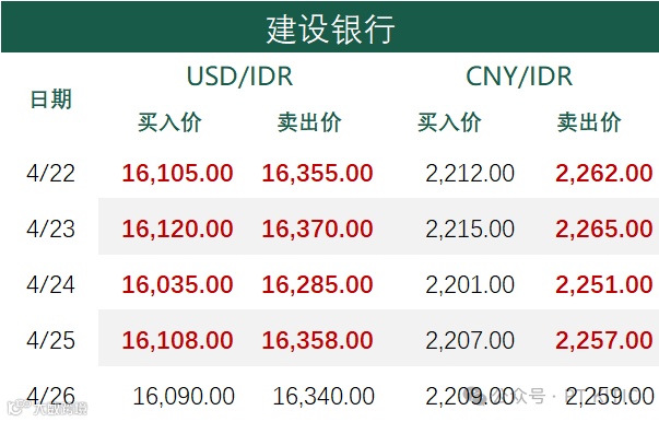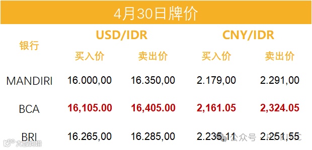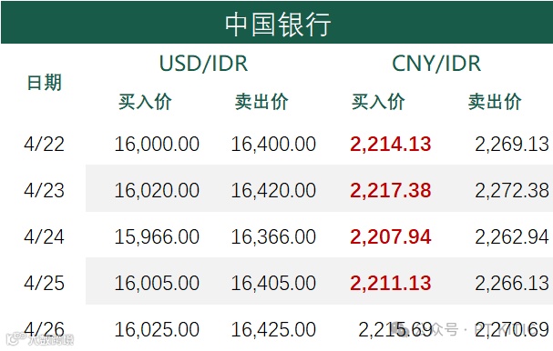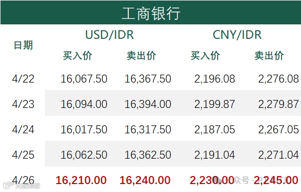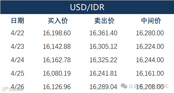 印尼央行每周牌价