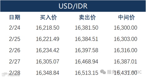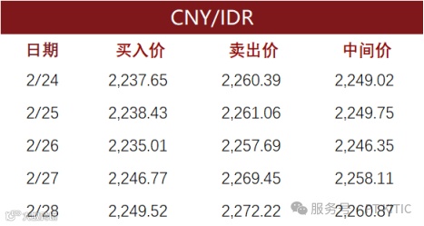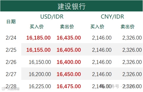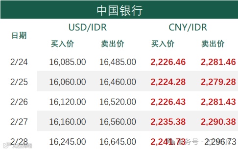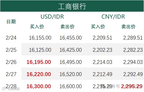 印尼部分商业银行主要币种2月28日外汇牌价