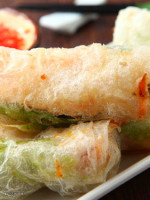 越南春卷是越南最受欢迎的一道菜。春卷皮用糯米做成,薄如蝉翼。将春卷皮裹上由豆芽、粉丝、鱿鱼丝、虾仁等馅,放入油锅中炸至酥黄。酥脆不腻,十分可口。
