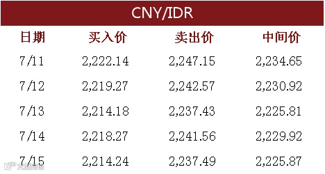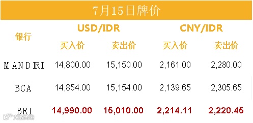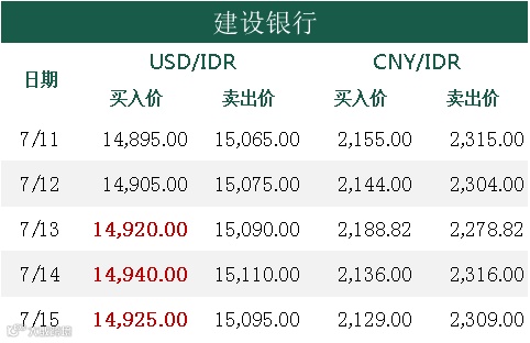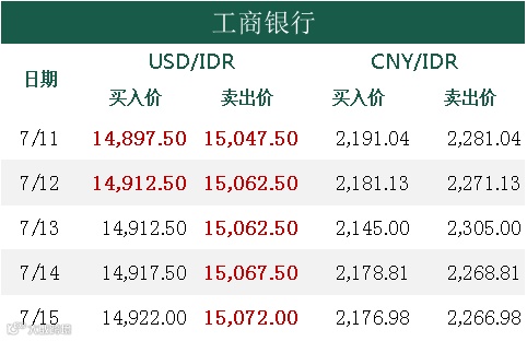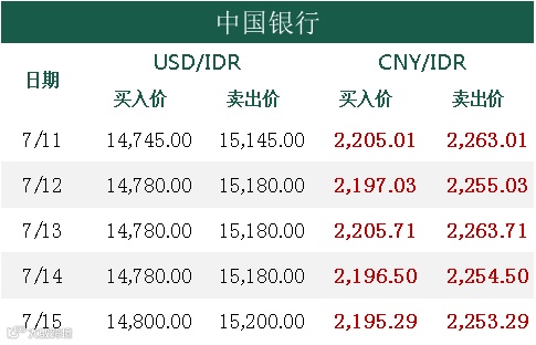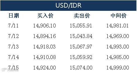 印尼央行每周牌价