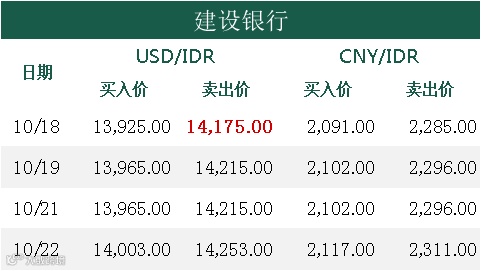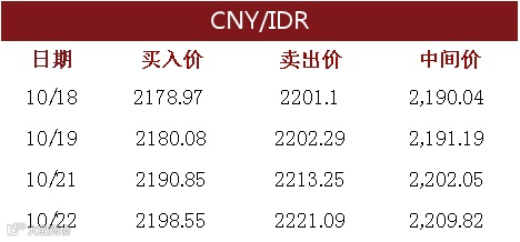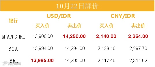 印尼央行每周牌价
