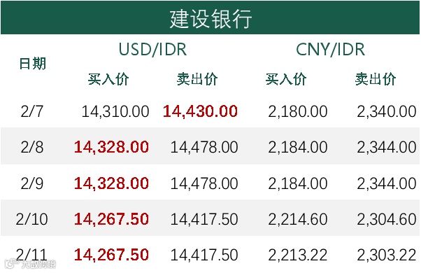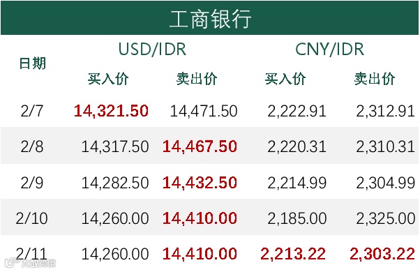 印尼央行每周牌价