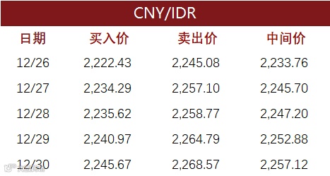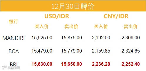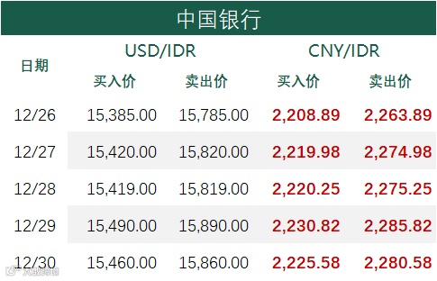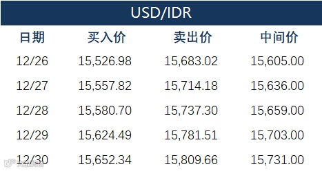 印尼央行每周牌价