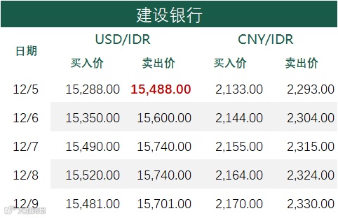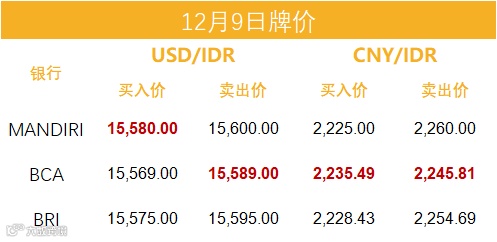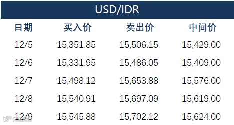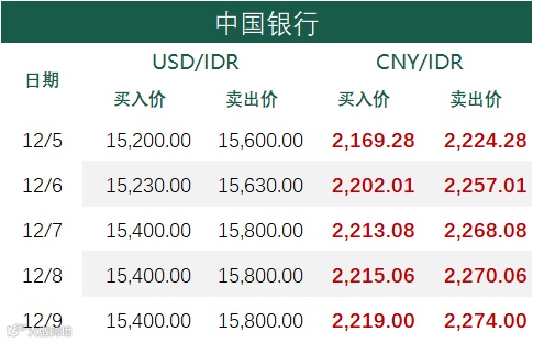 印尼央行每周牌价