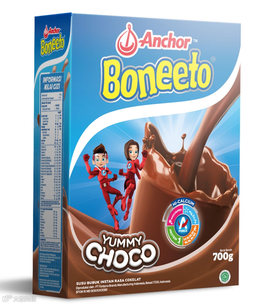 好吃又营养!用Anchor Boneeto奶粉完成您的早餐。由五种必需营养素制成,一杯温暖的巧克力Boneeto将为您的一天充满活力!
