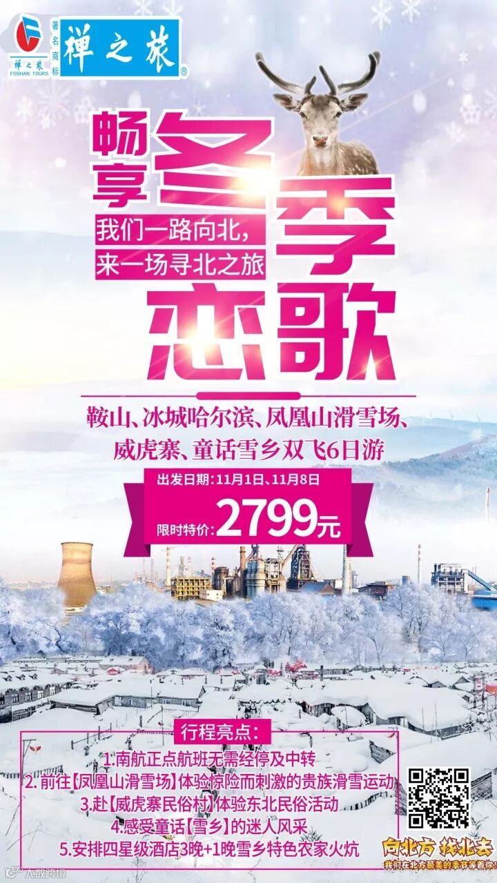 【畅享冬季恋歌】11月8日出发:鞍山、冰城哈尔滨、凤凰山滑雪场、威虎寨、童话雪乡双飞6天游┃2799元! 禅之旅容桂营业部