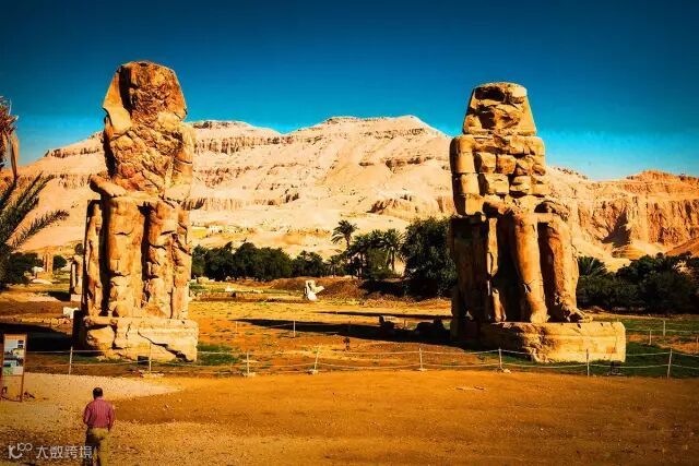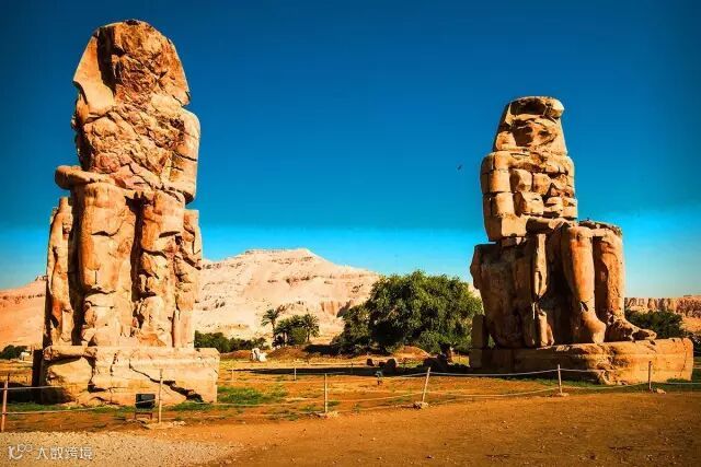 矗立在尼罗河西岸和国王谷之间的平原上,原是新王国十八王朝第十九位法老阿蒙霍特普三世为自己修建的葬祭殿,现神殿已荡然无存,只剩下两尊巨大的坐像。
