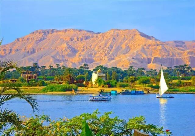 体验尼罗河上风平浪静,水面如镜,宽阔的河面上映着帆船的一点倒影,一片孤帆挂在了天地间,大气而又淡雅,似一幅宁静而壮阔的水墨画面。