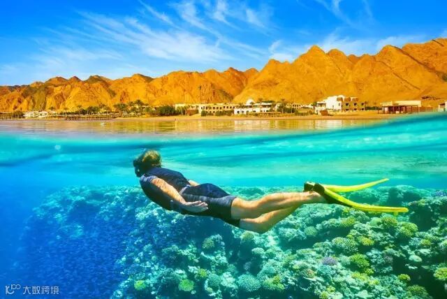 红海的海滩是大自然精美的馈赠。清澈碧蓝的海水下面,生长着五颜六色的珊瑚和稀有的海洋生物。