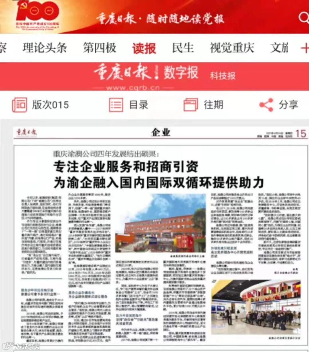 另外,渝澳公司还在沙坪坝区政府、市商务委、市经信委等部门等支持下,成功创建“一带一路”国家重庆海外贸易馆、渝澳海外仓、海归服务贸易产业园、国际港总部产业园、华为云渝澳大数据科技中心、铁路口岸渝澳跨境贸易基地、媛创贸易海关监管保税仓、贸易小栈进出口商品新零售平台、驻外国招商服务审批代办窗口等一大批涉外招商引资企业服务成果,创下重庆产业园区国际化配套最完善的行业第一。