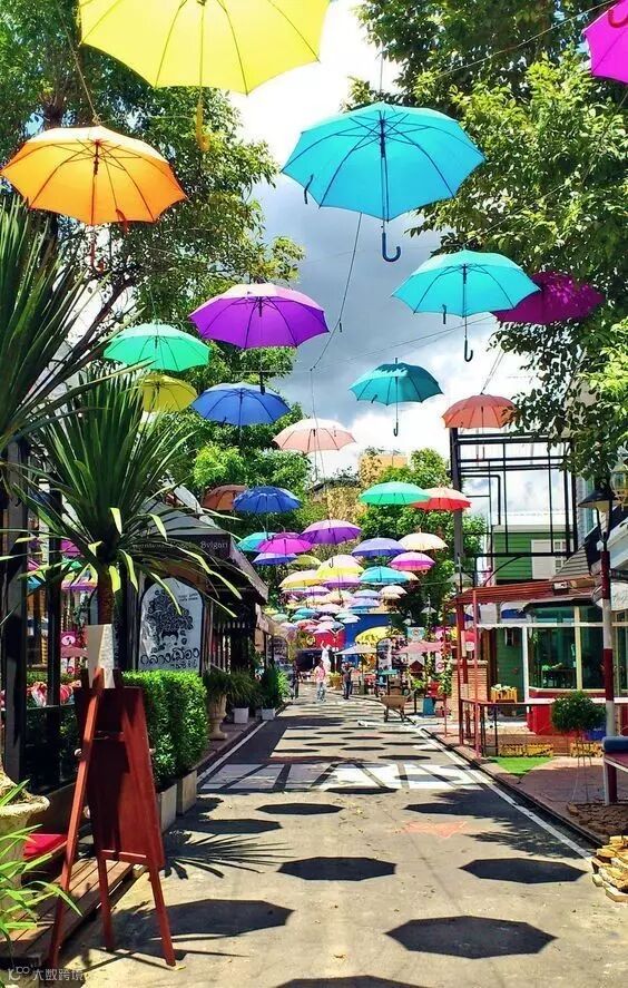 每一条街道都让人想要拍照,暖阳之下,五彩缤纷的伞有规则的排列着,文艺范儿满满。