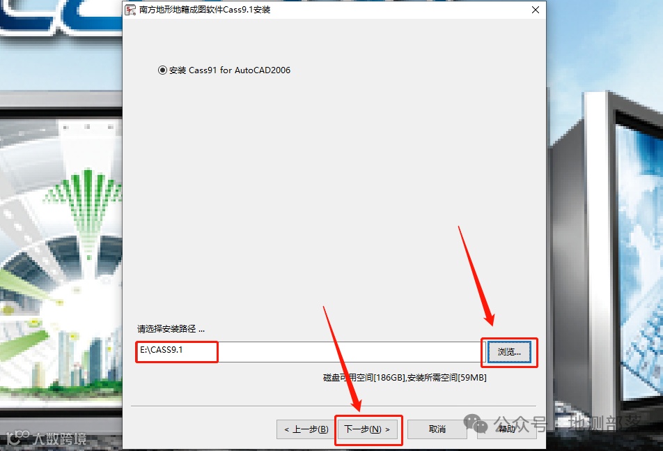7.点击浏览设置CASS9.1软件的安装路径,建议安装除C盘以外的磁盘,设置好安装路径后点击【下一步】。