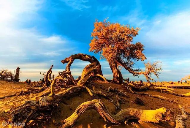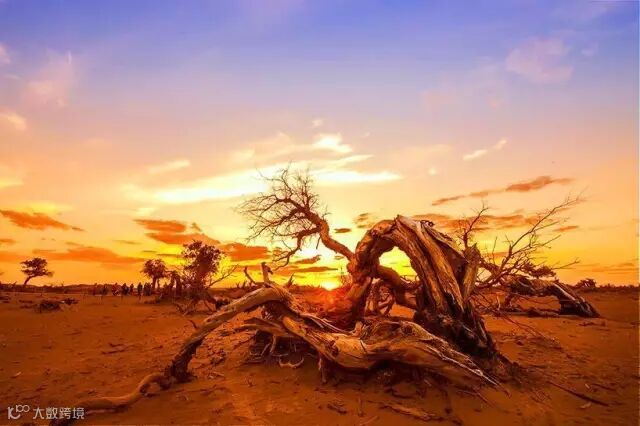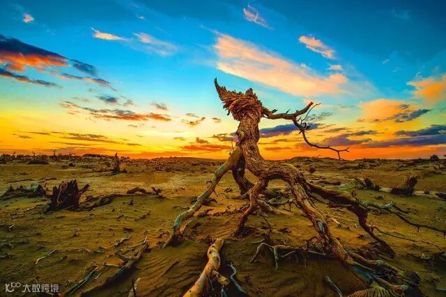 散落了满地的树干,裸露的枯根在空中扭曲着,是最能出佳作的地方,拍摄黄昏日落美景。