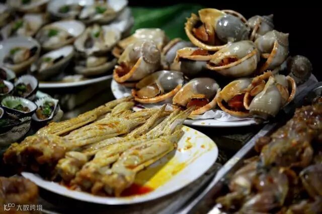 这里的海鲜很新鲜,种类也很多,如鲜鱿,大头虾,多种鲜螺,扇贝,海参,河蚬等,最出名的是海胆,这里的海胆很甜,夜市丰富的海鲜晚餐,大排档式,丰俭由人。