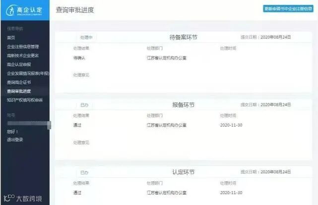 自11月30日起,2020年高新技术企业认定网上申报状态已更新,企业可自行登录相关网站查看最新进展。