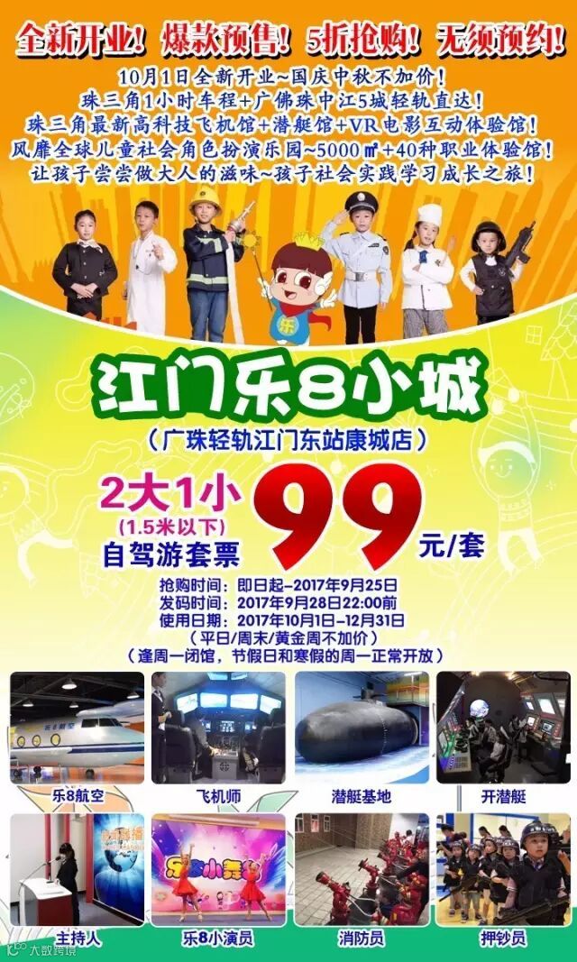 10月1日,面积5000㎡、拥有40种职业体验馆+飞机馆+潜艇馆+VR电影馆的乐8小城,将在江门康城广场隆重登场啦!