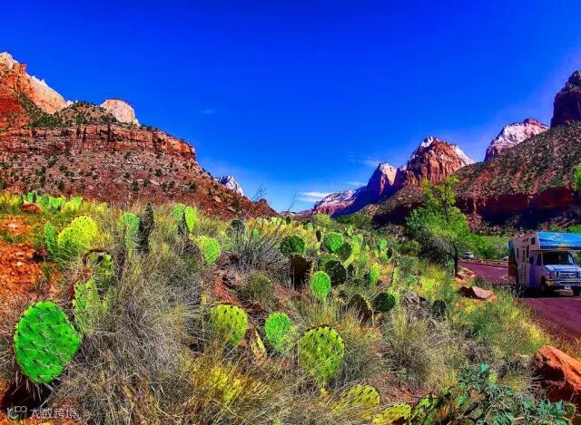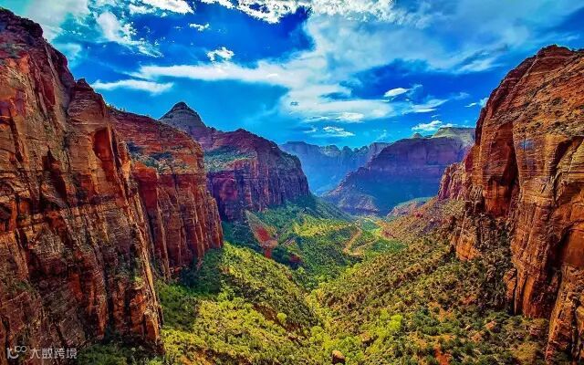 洛杉机-锡安国家公园-圣乔治 早餐后乘车前往圣乔治,抵达后前往【锡安国家公园】(约1小时),游览:(锡安是希伯来语,意味神圣的安详之地)。这沙岩圣谷壮丽无比,高大险峻的悬崖峭壁稳稳地挺立在天地之间,随车接近这些巨大的沙岩,才发现石头上竟有如此变化多端,状如水浪般的曲线。