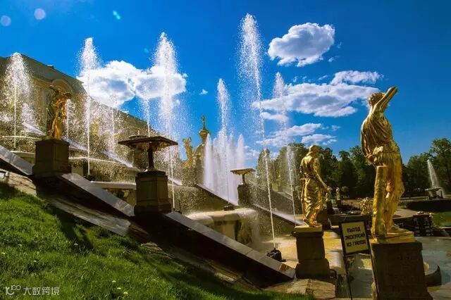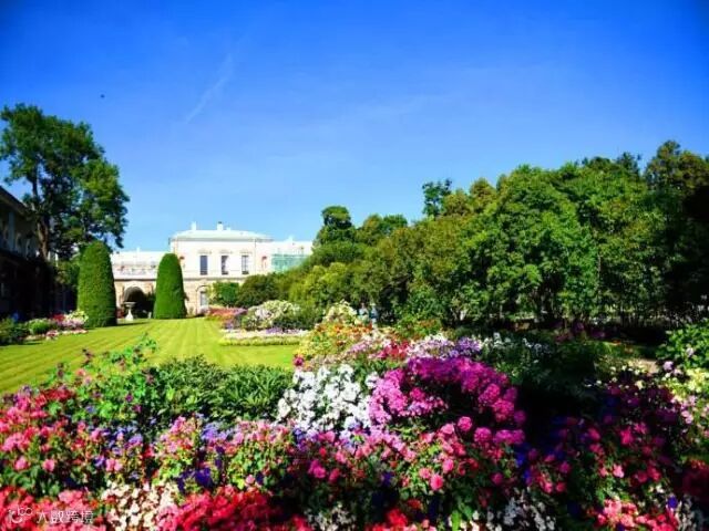 夏花园的布局独具一格,笔直的林荫大道,修剪整齐的灌木丛,设有喷泉50多处。