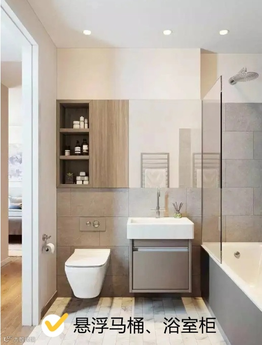 清洁便利:和浴室柜墙排同理,因为壁挂安装,下方悬空了,打扫卫生起来便利得多,马桶四周都没有卫生死角。。