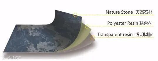 粘合固定材料是具有透光性能的树脂,然后将超薄石材铺贴在钢化玻璃或有机玻璃之上以增加强度打光,之后超薄石材便具有了透光的特性视觉效果。