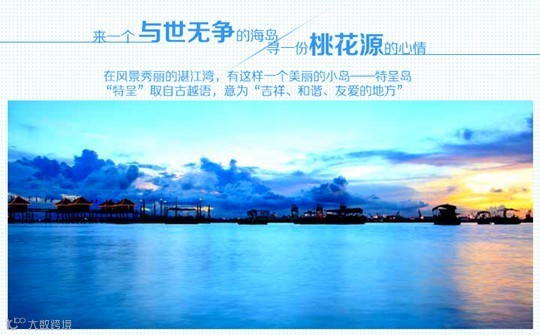 上午:早上于酒店品尝【中西式自助早餐】(早餐不用不退),后前往中国唯一古船木艺术海岛、有“海上世外桃源”之称的——【特呈吉祥岛】(含首道门票,不含园中园门票),拥有3.6万平方公里的沙滩蔚蓝与宁静;蓝得发绿的海洋、白得发亮的沙滩和层层喷绿的千年红树林,横跨红树林延伸到海中心的海上栈桥,走在上面感觉浪漫唯美,全然是一副马尔代夫度假的醉人画面。岛上有天然的远古火山岩温泉、小桥流水古道、雷州古城特色的四合院、茅草别墅(配有独立私人温泉),还可以享用地道渔家美食,骑自行车环岛游玩,在打渔归来的渔民那购买天然海鲜加工,鲜美无比,也可以在岛外的渔民农庄上吃个海鲜,喝杯鸡尾酒,在清吧上看着海景,享受一下音乐,唱上一首怀念的老歌,满格的小资情怀,重要的是还不贵,给您一种别致的度假享受!可自费前往乘坐湛江标志景点【十里军港揽胜—红嘴鸥海上游船】(门票自理,138元/人)畅游有香港“维多利港”之称的湛江港湾精华段,伴您“港湾揽胜”欣赏集十里军港,海面碧蓝如玉、波澜不兴,渔帆点点、巨轮争流,海鸟掠浪飞翔,码头吊机忙转。 中午:后前往游览被评为“广东十大最美海岸”之一、国家4A级沙滩旅游景区、中国最美“城中海”海岸线【金沙湾.保利海岸】延绵2.65公里的海岸,处处是欢乐的人群。在海滨浴场游泳区,一群群青少年迫不及待地奔向大海,在水中畅泳、嬉戏,;岸边的沙滩上,大人小孩踩着软软的细沙,或是沙滩漫步,或是追逐、游戏,有的放风筝,有的玩沙雕、有的还踢起了沙滩足球,尽情玩耍,迷人的椰风海韵吸引大批游客纷至沓来。优越的地理位置,汇聚了各种大型商业中心、酒店、美食、娱乐等等,是集吃喝玩乐购于一体的景区; 午餐自理。后乘车返回温暖的家,结束愉快的旅程!