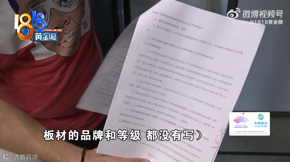 记者:“部分柜子用的不是健威家居的板材,这一点为什么不能写在合同上呢?”