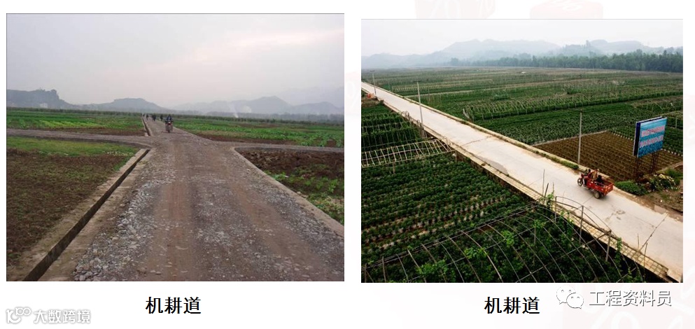 田间道路工程指为满足农业物资运输、农业耕作和其他农业生产活动需要所采取的各种措施,包括田间道和生产路。通过合理地实施田间道路工程,构建便捷高效的田间道路体系,使田块之间和田块与居民点保持便捷的交通联系,满足农业机械化生产、安全方便的生活需要、促进田间生产作业效率的提高和耕作成本的降低,并提高土地利用率。田间道路工程布设宜形成网状。
