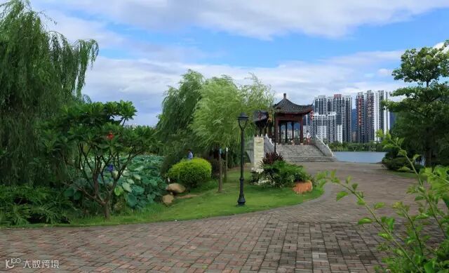 公园结合了清远市山、水、城相依的特点,以四水(北江、滨江、大燕河、笔架河)为现状依托,通过人工湖的开挖,使“山、水、城”相亲、相融。