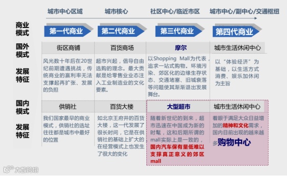 商业地产的发展与居民消费结构和消费水平发展阶段密切相关,大致经历了“必需——起步——发展——享受”四个阶段。