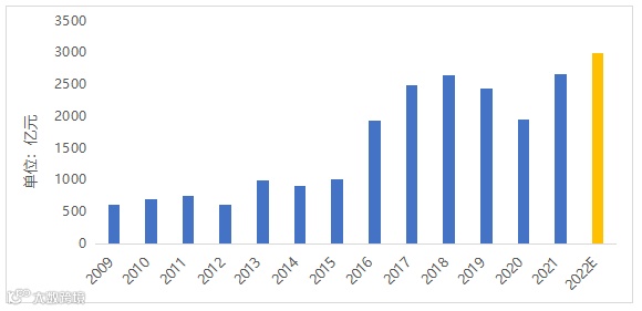 从统计数据看,国内商业地产的投资规模由2010年左右的500-1000亿元增至2021年的接近3000亿元。其中,2016年是一个重要的分水岭,由于住宅市场受到宏观政策调控影响,大量房地产开发企业将其战略布局转向其他领域,商业地产以其持续盈利性得到了更广泛的关注。