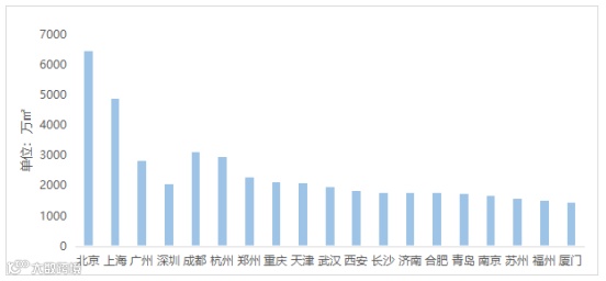 而从供应结构来看,国内一线城市(北京、上海、广州、深圳)和重要二线城市(成都、杭州、郑州、重庆、天津、武汉、西安、长沙、济南、合肥、青岛、南京、苏州、福州、厦门)是商业用房的供给主力。相关统计数据显示,这20个重点城市办公楼的累计供应量占全国比重超五成,商业营业用房占全国的比重在两成左右。