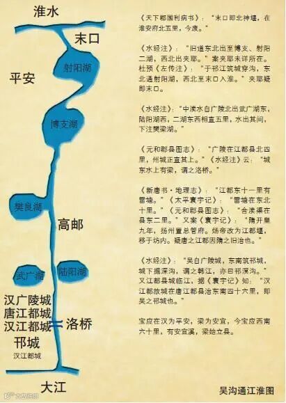 《越绝书·吴地传》里的记载:“吴古故水道,出平门,上郭池,入渎,出巢湖,上历地,过梅亭,入杨湖,出渔浦,入大江,奏广陵。”据后人考证,认为是今从苏州至江阴、常州一段江南运河的前身。
