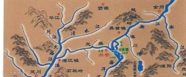 公元前219年,秦始皇派水利专家史禄领导“凿渠运粮”,在五岭之上开了一条运河。位于广西壮族自治区兴安县境内,于公元前214年凿成通航。灵渠流向由东向西,将兴安县东面的海洋河(湘江源头,流向由南向北)和兴安县西面的大溶江(漓江源头,流向由北向南)相连,是世界上最古老的运河之一,有着“世界古代水利建筑明珠”的美誉。