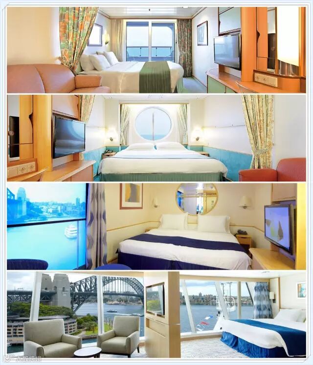 内舱、海景第三四人价钱,不含港务费税费、交通、小费等费用 |
