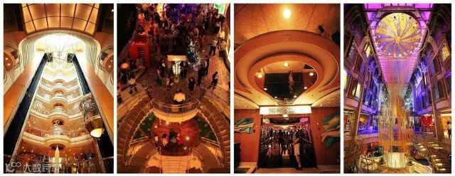 于离海面200呎的攀石墙上挑战自我 ● 全球最大型的海上健身设施──Ship Shape水疗按摩,内有美容室及理发店 ● 皇家购物大道中庭共占4层甲板,超过2个足球场长,提供完美餐饮、娱乐及购物设施 ● 日光甲板及日光浴室,室内泳池,按摩池及咖啡室 ● 全球最大的海上娱乐场皇家娱乐场提供不同项目,包括21点(Blackjack)、轮盘 (Roulette)、骰子(Craps))、加勒比海扑克(Caribbean Stud Poker)及老虎机(Slot Machine)等。 ● 各式各样的餐饮可供选择,从轻松的Johnny Rockets*美式餐饮到Portofino's*意大利餐厅,应有尽有 ● 美轮美奂的三层高剧院上映百老汇歌舞剧、音乐剧及特技表演,全部由专业表演者演出 ● 海上历奇青少年设施为不同年龄的儿童提供活动,并有专人看管